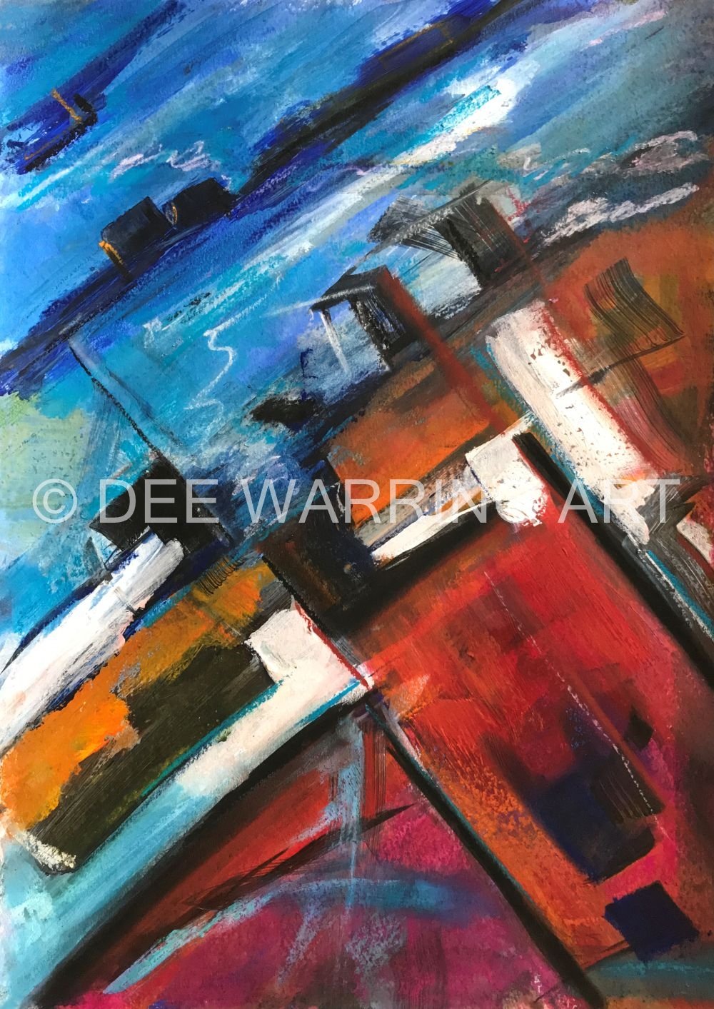 This artwork is an imagined, aerial perspective of a container wharf complex adjacent to a wild, winter sea. Lately I have been exploring aerial views of imagined landscapes and my work deliberately creates ambiguous spatial relationships and perspectives.